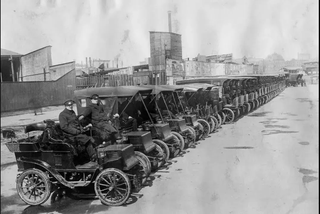 还有现在叫新能源车以前叫电动车:1897年,伦敦最早的一批电动出租车上街,别号“蜂鸟”~因为这些出租车没有马车和汽车的噪音,刚开始还是受到了欢迎~