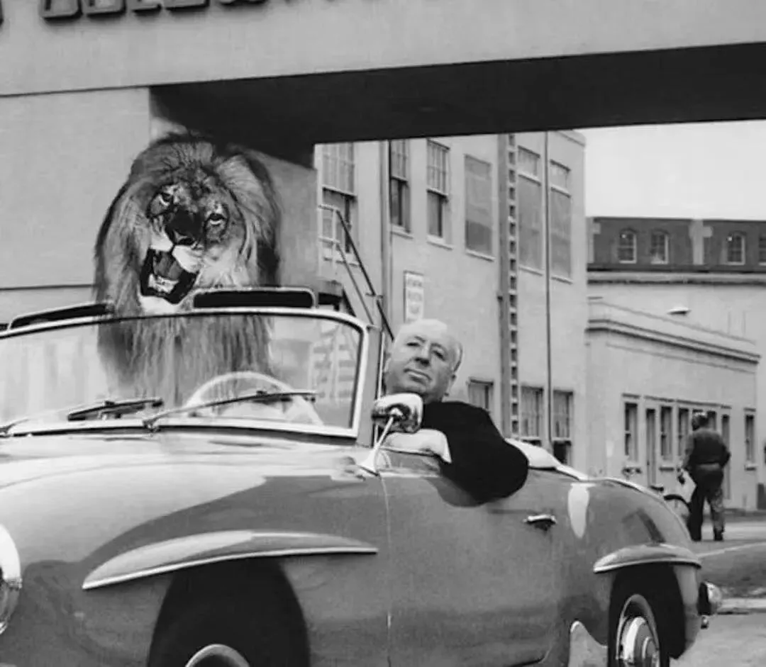 恐怖片大师首先自己要胆大否则🉐️先被自己导演的电影吓倒🤭]1957年,大导演希区柯克带着狮子leo 在米高梅片场兜风。还有金发实景拍摄、凝视和麦格芬以及“希区柯克式”变焦构成了恐怖电影的先驱!