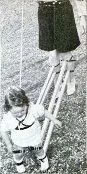 而当我们蹒跚学步时:1939年,瑞士一款“脚把脚”教孩子走路的装置。
