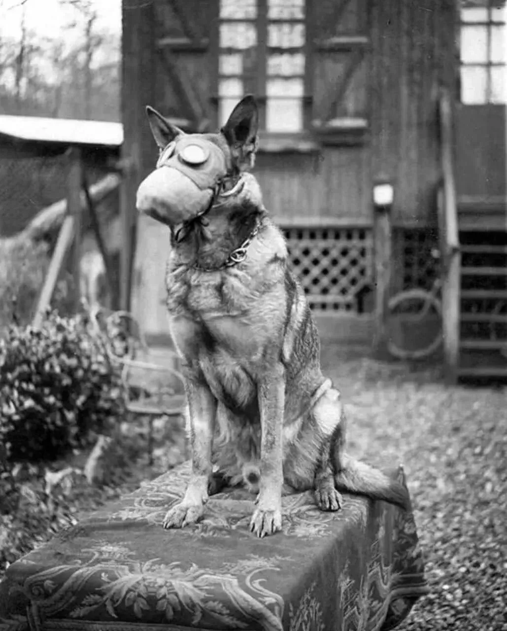 1917年,一条戴着面罩的火灾搜救犬:动物保护主义是🈶️渊源的,现在更多的是哭一哭英勇就义的狗狗🐶