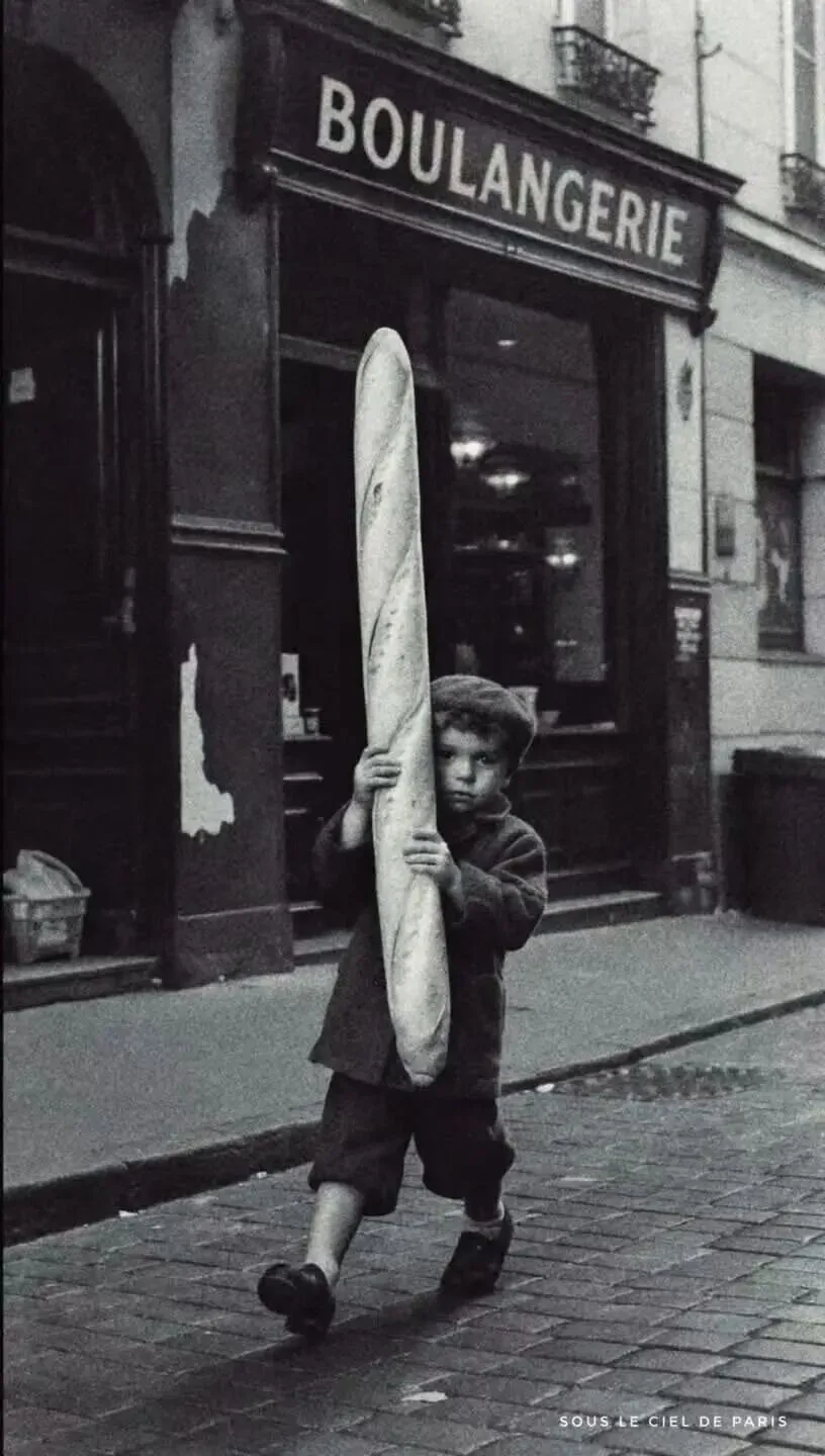 你又有多久没有像这样兴高采烈满载而归了呢?1930年代巴黎,拿着刚买的早餐回家的小男孩,你现在回家还有这个激情吗?