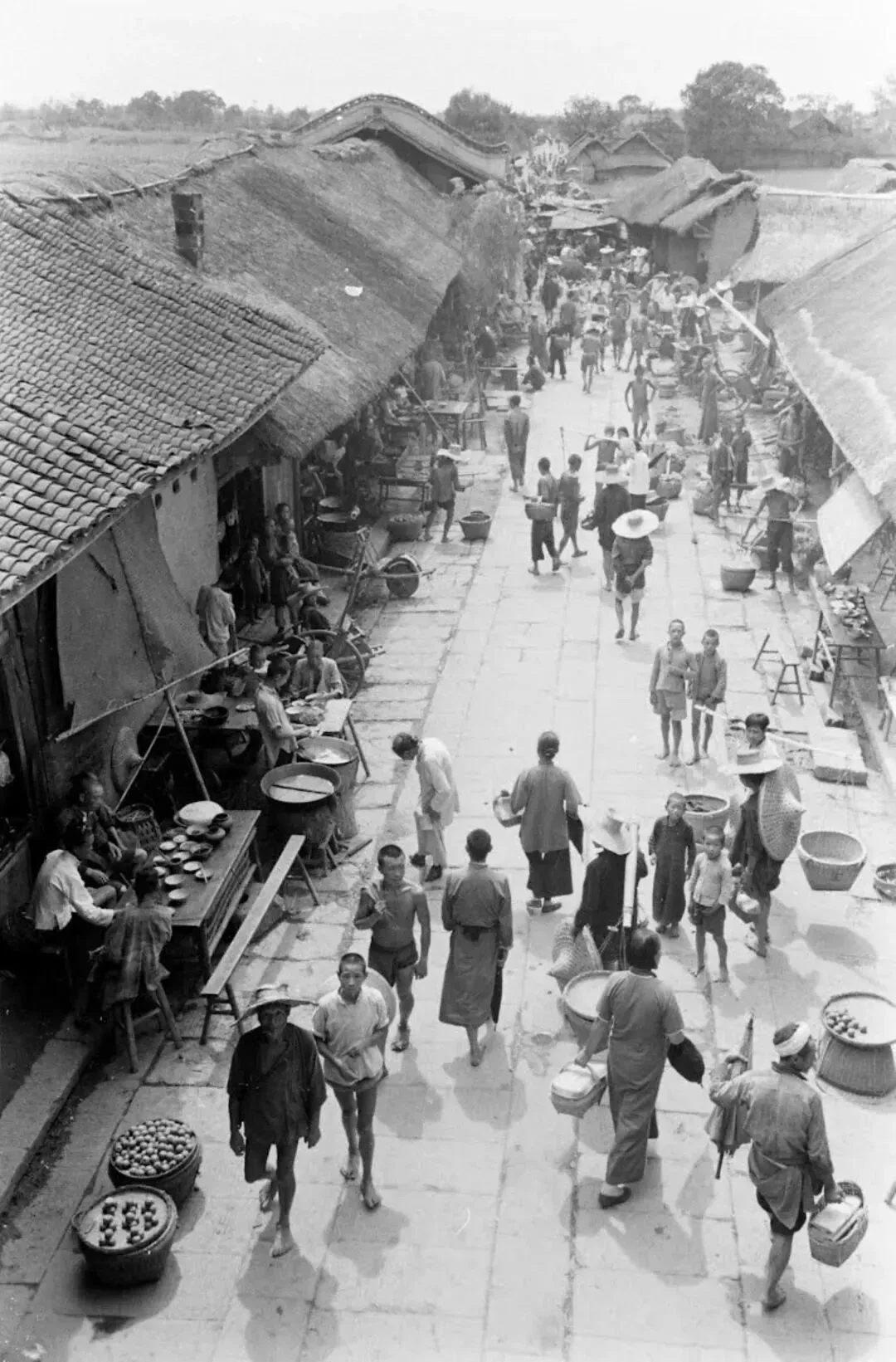 每次看到这些旧时代的老照片,总觉得时光会顺着黑白的纹路,慢慢流回那个车马很慢、烟火很浓的年代。你看这老街,地上都是青石板铺的,屋檐都是茅草与青瓦。那个年代家家都很穷,都差不多,坐在一起拉着家常,聊着农事。这个大哥穿的棉衣,现在电视剧里都没有了吧,也许只有那些黑白片里能看到了。土墙围起的小院里,最怕的就是雨天,泥泞的道路,没有雨鞋,走在薄泥地里很艰难。更害怕的是堆在门口的草垛,湿了就没有草升火了,所以一般都会在锅屋存一些草和柴。这样下雨就不怕了。还有走街串巷的手艺人,背着木箱子,拿着快板,到别人家展示才艺,讨点银两或者吃的。那个年代这个可就如同要饭的一般,不像现在自媒体时代,这就是才艺了。这些老物件、老场景,没有精致的装饰,却藏着最动人的烟火气。