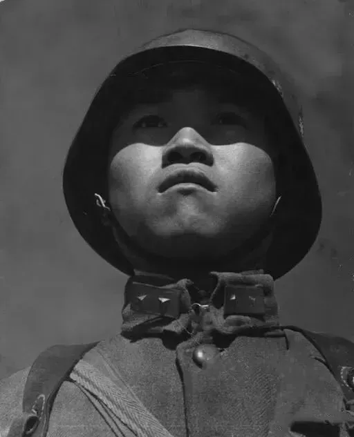 这是1938年汉口一个年仅15岁的中国士兵,他高昂头颅,传达出中国军人抗日的凛然之气。