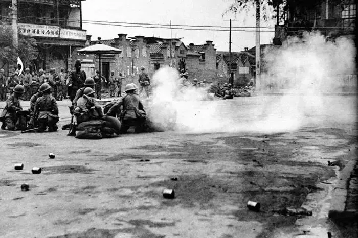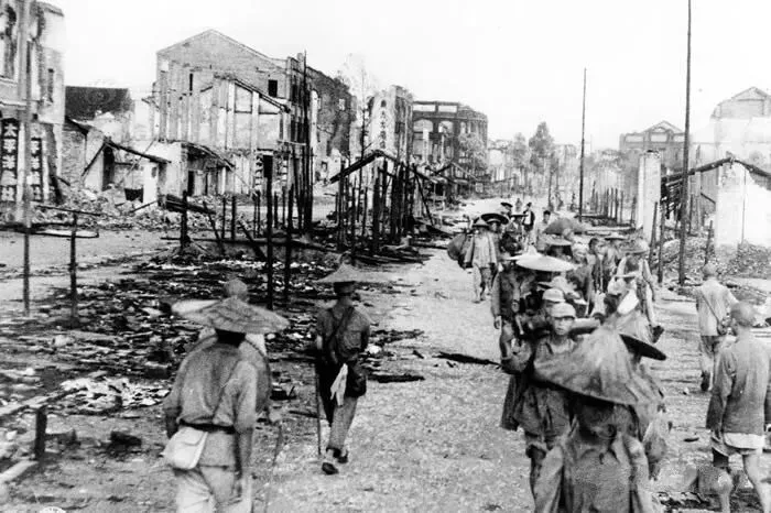 三个月时间里,中日双方动员兵力超过一百万人,其中中方动员兵力约75万人,伤亡25万余人。淞沪会战将日本“三月亡华”的狂言彻底粉碎。图为日军进入闸北地区。