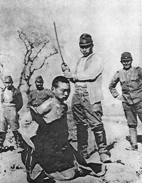 在南京,日军对南京人实施了惨无人道的大屠杀,有的日本军人竟残忍到展开杀人竞赛。屠杀造成至少30万人死亡。图为侵华日军砍杀南京青年,称为“试斩”。