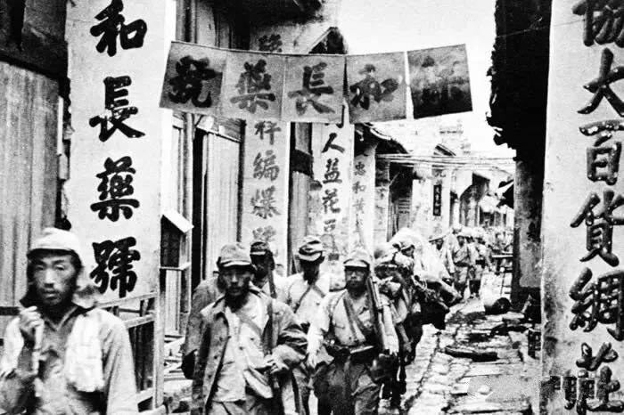 长乐街在四次长沙会战中都占据重要地位,图为1941年9月23日,日军步兵第45连队进入长乐街。
