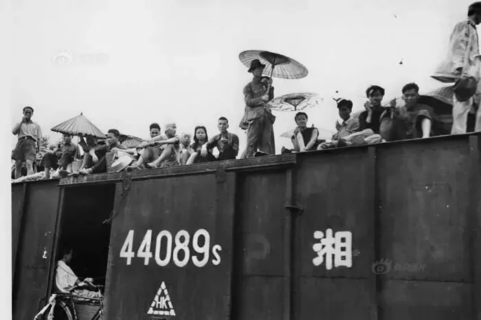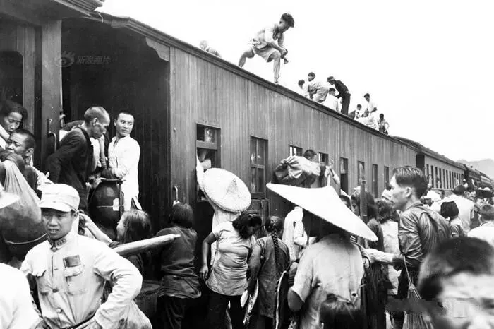 1944年,桂柳会战中,随着日军的推进,试图乘火车逃离战乱的桂林人。