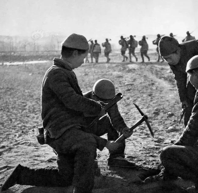 1941年到1942年,日伪军队对晋察冀边区发动“铁壁合围大扫荡”、“五一大扫荡”和大规模“肃正作战”,修筑大量道路、封锁沟、据点。边区军民创造了地雷战、地道战等一系列游击战法。图为晋察冀边区埋地雷的场景。