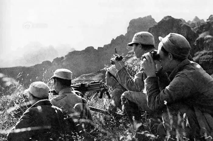 1941年9月23日,日军向易县进军,妄图包围杨城武司令员指挥的晋察冀军区一分区。24日,3500名日伪军突然包围了狼牙山地区。战斗中,马宝玉、葛振林、宋学义、胡德林、胡福才5人宁死不屈纵身跳下悬崖。三人壮烈牺牲,两人幸免于难。图为狼牙山上的八路军战士。