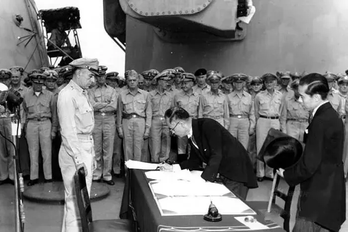 1945年9月2日,日本外相重光葵代表日本天皇及日本政府、大日本帝国陆军参谋长梅津美治郎大将代表帝国大本营在降书上签字。日本投降,世界迎来短暂的和平。