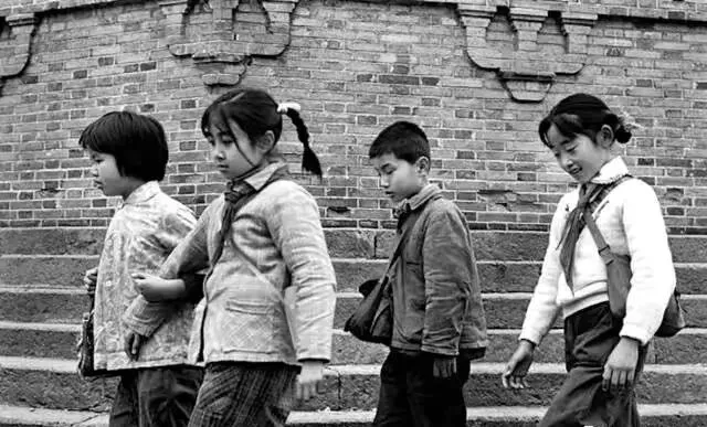 1.放学时的几个小学生,都在默默地走路。