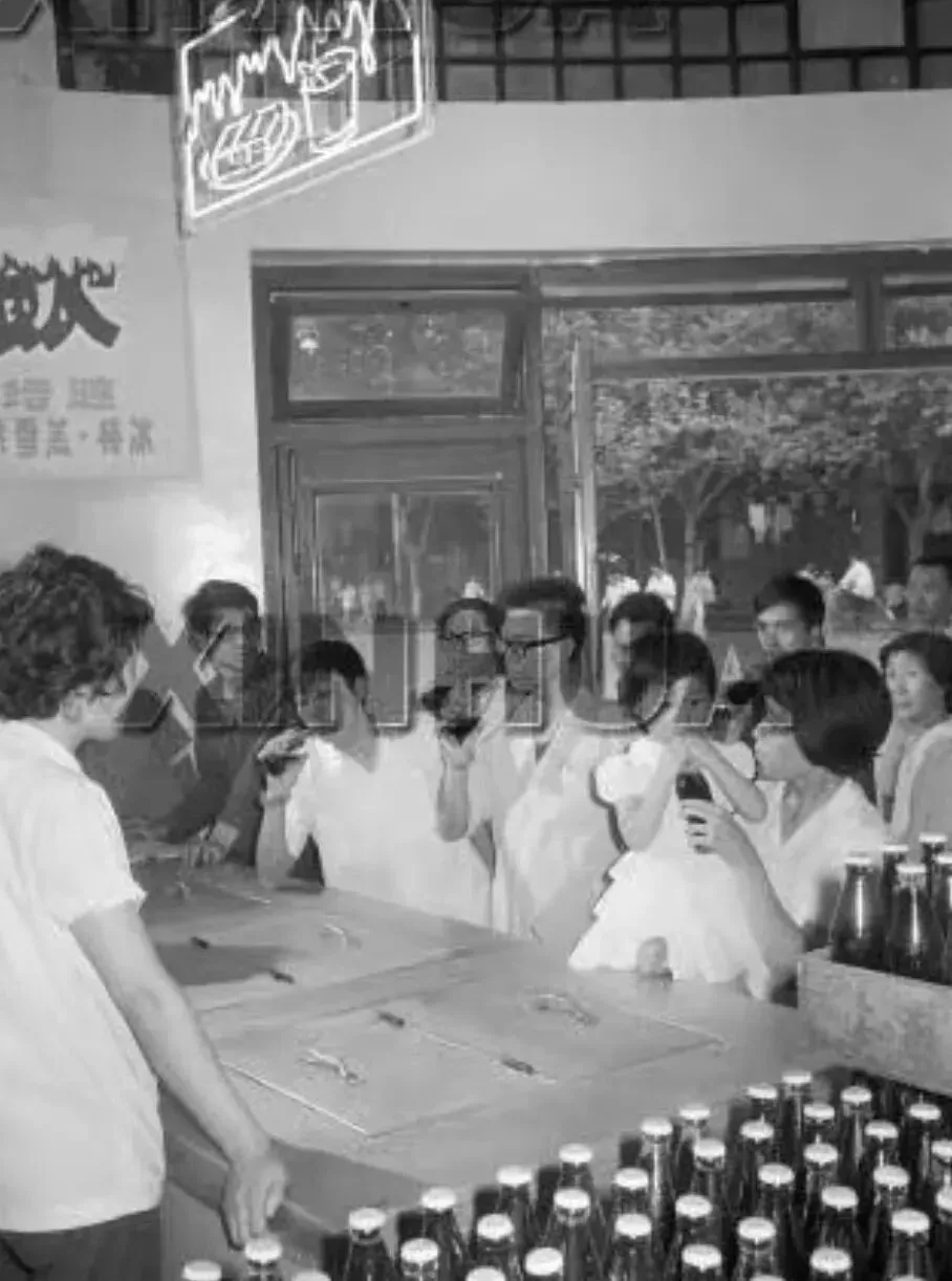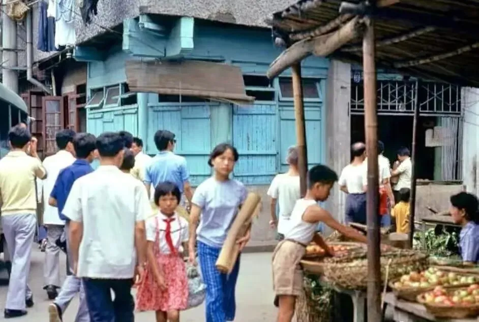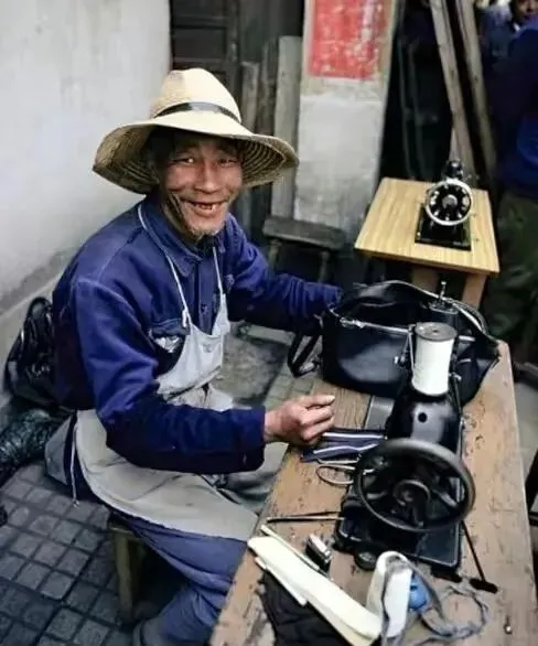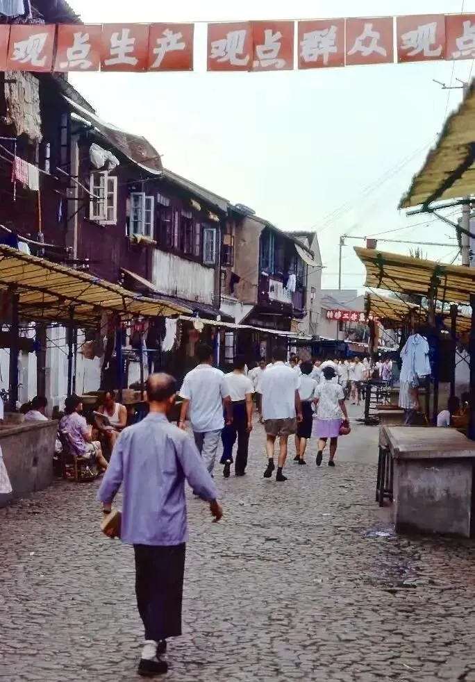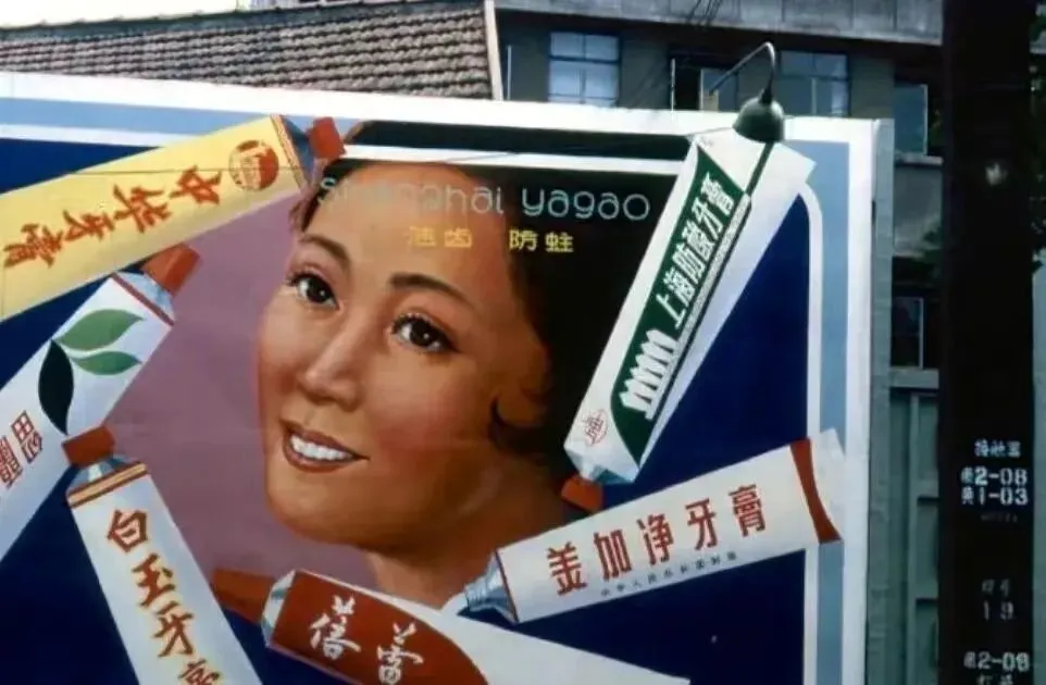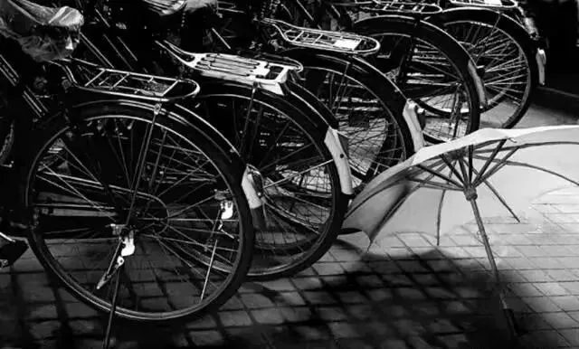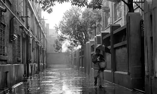 20.南京路的一个自行车停放处。地上还放了把旧式的木伞。21.牙膏广告,白玉牙膏,美加净牙膏,上海防酸牙膏。22.一个下雨天,一个老婆婆挽着一个小竹篮,撑着一把伞,走在弄堂里。