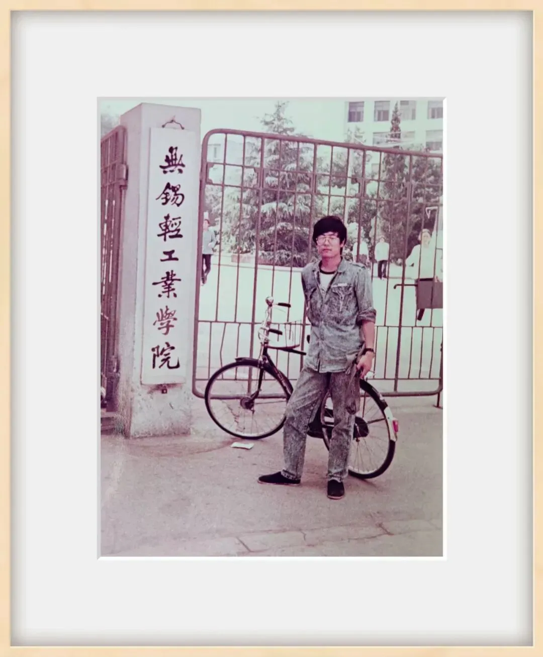当时学校的大门建筑是再普通不过了。砖混结构的两个水泥墩,外饰水洗马牙石;圆钢管焊接的大铁门,全凭人工费力来推拉;两米多高、近四十公分宽、白底黑字的校牌“傲气”地挂在大门左墩上,尤其是“无锡轻工业学院”那七个字,苍劲有力、笔酣墨饱,颇有颜筋柳骨的风范。