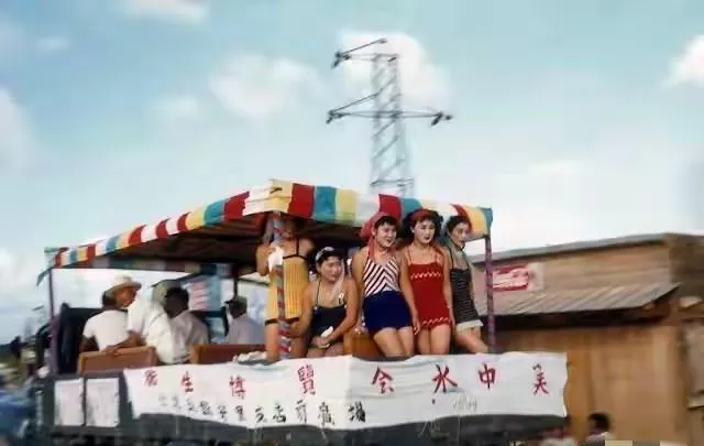说句心里话,不少姐妹看照片都说:“这明明是在中国的哪个小镇吧?”其实真不是!这里虽然临近日本,却到处可见中文标语、旗帜,连社会倡导都要用中文来做。看看卡车上的姑娘们,穿着泳装举着“保护贞操、道德和节育协会”的横幅,宣传的阵仗叮叮当当地开在街头,比现在的广场舞还热闹!
