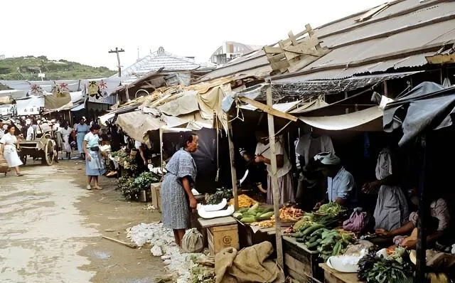 实话说,那个年代的琉球人,过得真不容易。你看照片里那些扛着木架、骑着自行车的汉子们,踩着黄土路赶生活,每个人脸上都是对日子的执着。还有菜市场一角,各色蔬菜新鲜得能掐出水,简易的棚子下,都是一双双为日常奔波的手。虽然条件艰苦,但谁都没闲着,日子就这样扎扎实实从手里过出滋味。