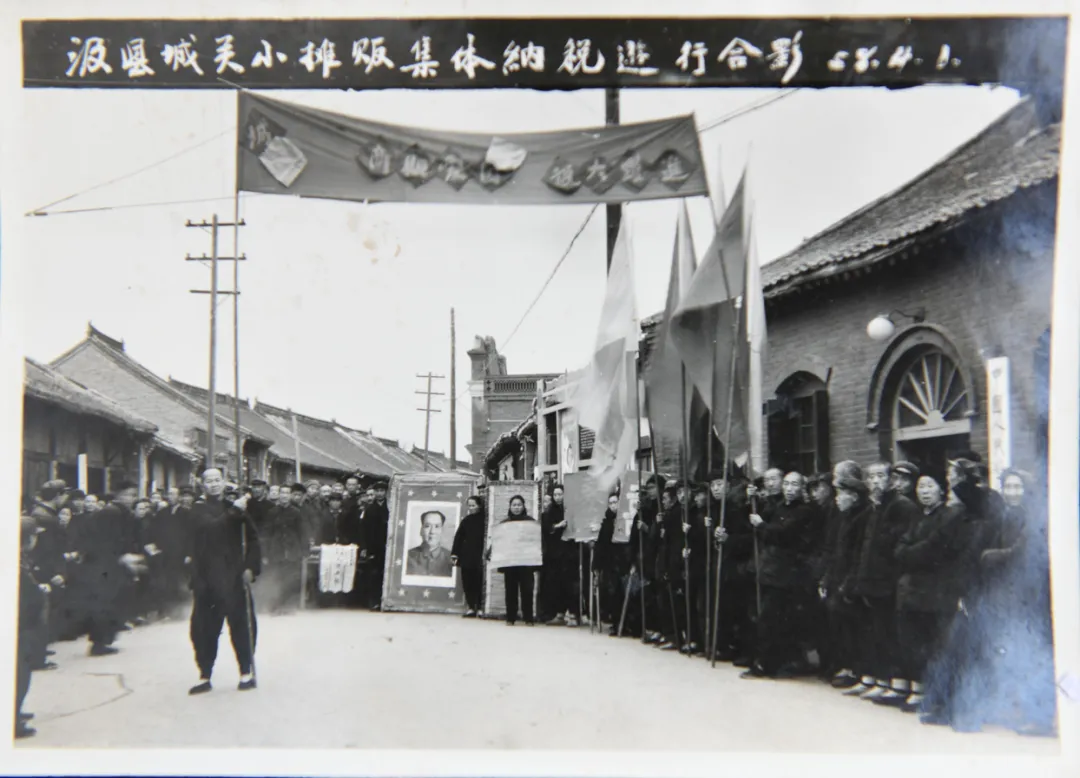 1958年4月1日,汲县城关手工业生产合作社集体纳税游行