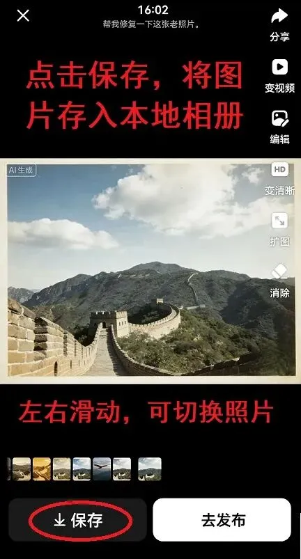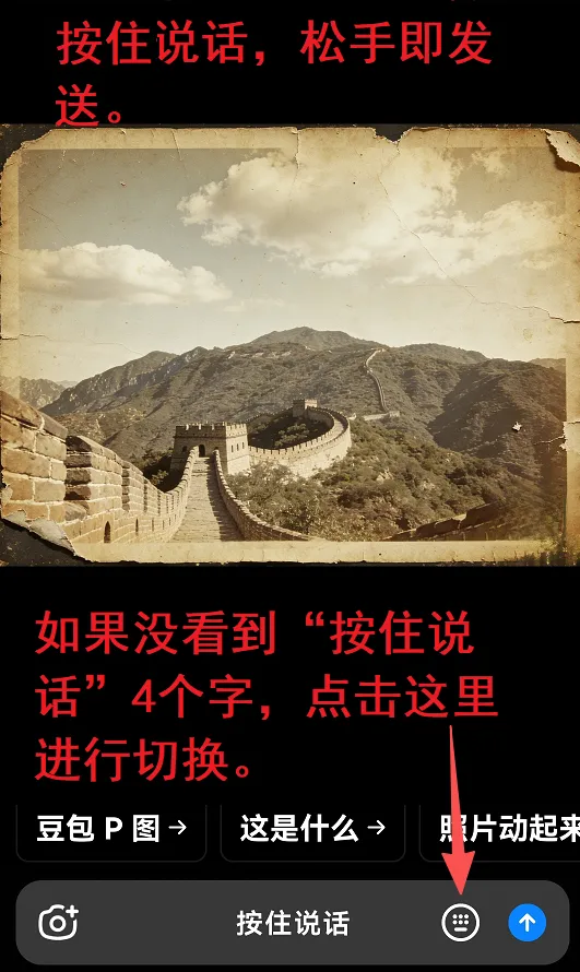 今天再说几个实用有趣的小功能:利用豆包修复老照片、换照片背景、不拍照生成新照片。