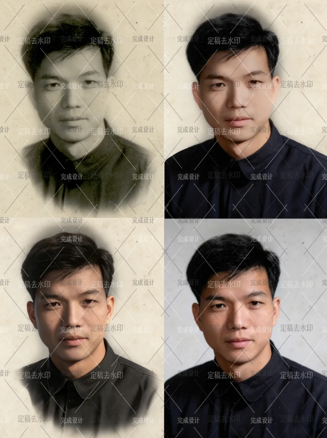 人像精修 遗像制作 生活照改遗像 人工修复翻新 旧照片还原 模糊变高清晰 黑白上彩色