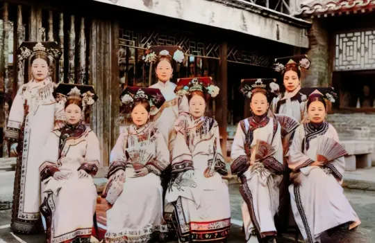 照片里没有大官,也没有名人,王府的女官站着,脚尖往外撇,这不是讲究姿势,是常年跪坐让腿变形了,