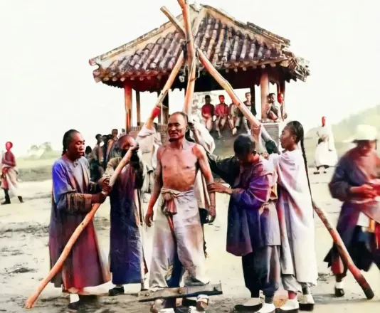 刑场旁边搭了个凉棚,有人坐在里面喝茶说话,底下刚行完凌迟,刀口还湿漉漉的,有人戴着西洋宽檐帽,旁边的女人却穿着镶锯齿边的旗装,这不算赶时髦,是乱世里没得选,只好混搭着穿,拍照的人没有躲开,被拍的人也没跑掉,说明那时候照相不算犯忌讳,但只有很少数人能遇上这种机会。