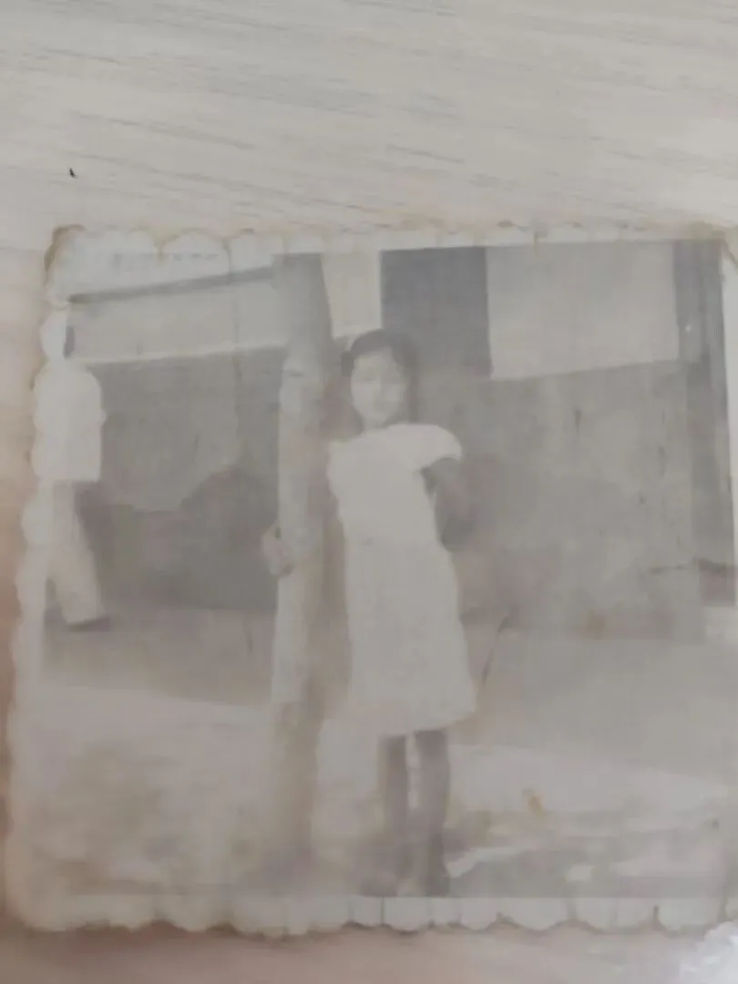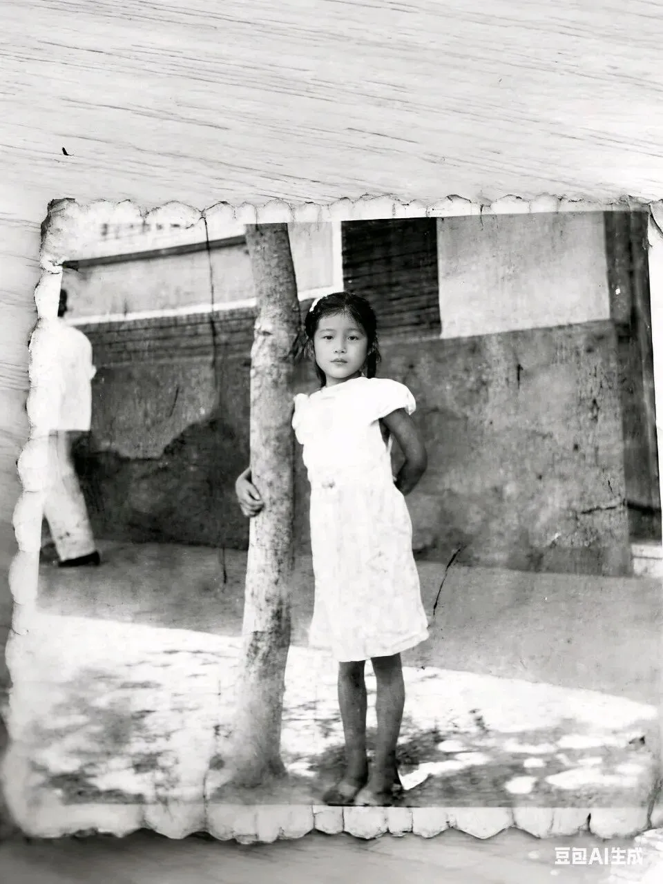 这张带着岁月褶皱的老照片,早已在时光里蒙尘:边缘泛黄卷边,画面朦胧模糊,连小女孩的眼神都藏在薄雾里,像被岁月轻轻蒙上了一层纱。