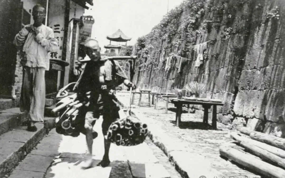 竹担挑着各式破旧陶罐和杂货,光着膀子的汉子汗水顺着身上流,腰间别着杂碎绳子和挂钩,哪家的孩子看一眼,路边跑远了都不敢靠近,这种小买卖能吃上几口饭,全靠走街串巷一滴汗一分掰巴过来。