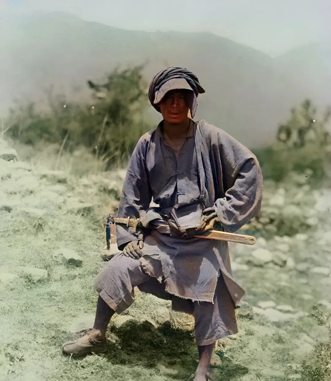 图中这位叫护路的壮汉,头巾一缠,短剑横在腰上,衣襟磨白,眼神直直的,路上打尖时就靠他们看着骡马,爷爷说“那会儿赶路心是悬的,有这类人守着才好过”,现在车从高速上呼啦啦跑过,安全感换了样子,却也来得更稳。
