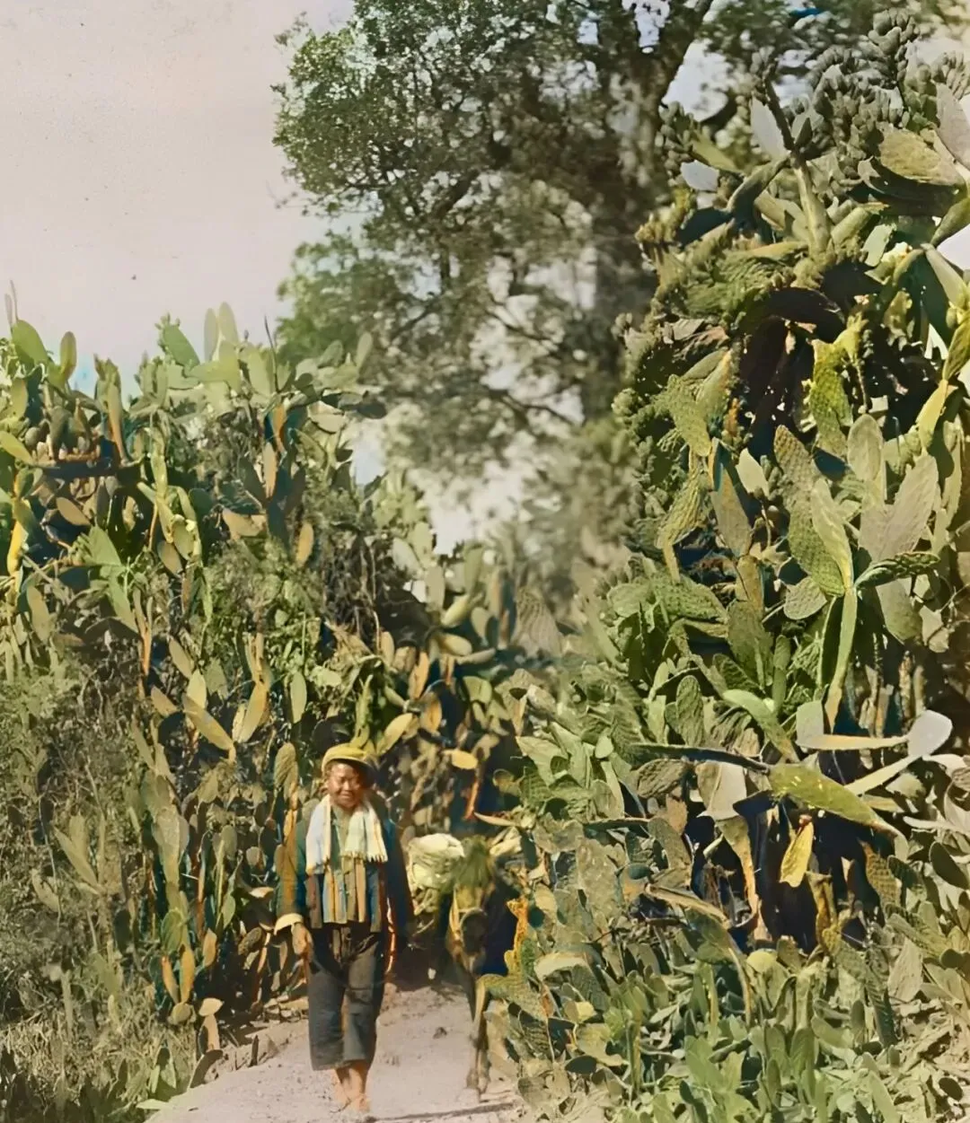 路旁这片刺架子叫霸王树,梨果仙人掌,叶片一扇扇叠着,厚得像皮子,刺头微黄,一位人牵着马从里头穿出去,手不敢乱摆,奶奶说这玩意儿也能当篱笆,又防牲口又挡风,现在多半是成了景观树,修成一条整齐墙,扎人的劲还在。