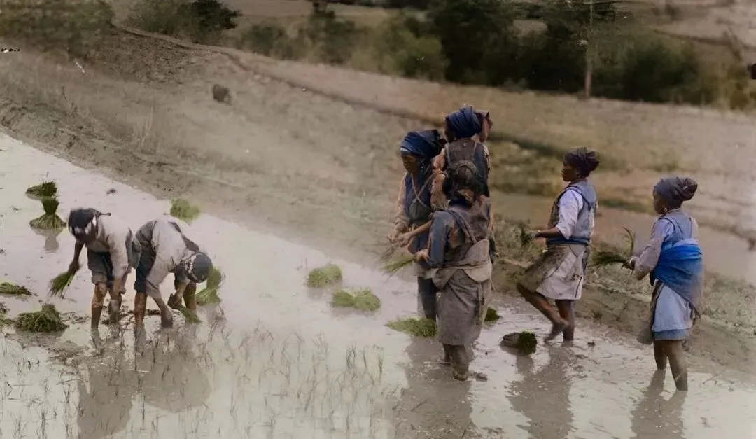 田里这一片是插秧的活,裤腿卷到膝,泥巴拔不出脚跟就“噗嗤”一声,捧一把秧,手腕一抖就下到水里,旁边几个姑娘说笑,捡漏的再补两棵,妈妈说“抢芒种的时候,太阳狠也得下水”,现在田头多见的是移栽机,水面平平,秧行直直的,手心的茧却少了。