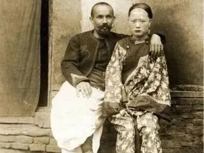 图里搂着女人的那个,穿制服的不是自己人,这张照片拍得太扎眼,清末的妇女本是大家闺秀,衣裳花色还在,眼神里全是躲不开的绝望,胳膊搭上肩,一动不动,脸上那种麻木,一看就知道没地儿跑,那时候老百姓可没权利说个不字。