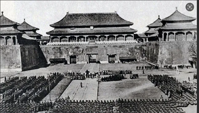 最后这一幕最厉害,紫禁城大门口那场景,被一群穿外军制服的家伙挤得满满当当, 午门前本该是天子权威,偏偏成了异乡人列队阅兵的操场,画面里一排排士兵像蚂蚁一样队形整齐,看着让人心里冷个透。