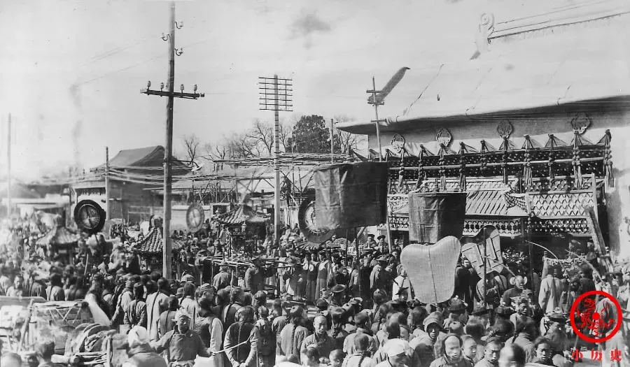 看到这张照片,我首先关注到街边立起来的电线杆。北京的用电历史是什么时候开启的呢?1888年,慈禧太后的寝宫仪銮殿安装了进口的发电机,亮起了京城第一盏电灯。随后,朝廷又买了一台发电机组,安装在颐和园。大规模照明始于1905年,当年官商联营的华商电力公司成立,为官府、街道、商店的8000余盏电灯供电,从此北京用电事业获得长足发展。