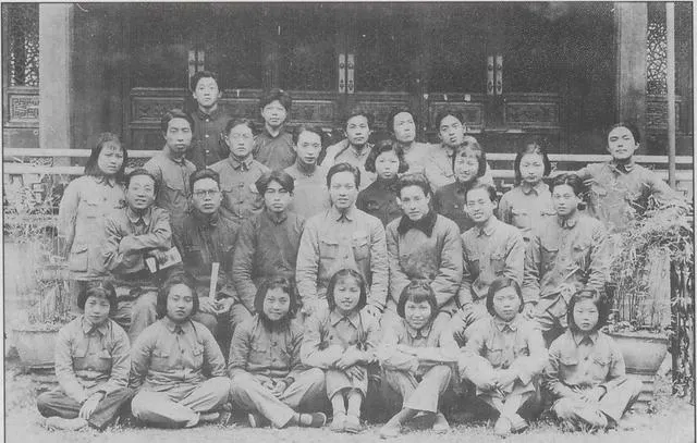 一排排坐得直直的青年男女,穿着苏青色制服,台阶上正好能一字排开,看起来安静,其实桌子底下有激动握拳的手,这一群是宣传队的, 话剧演出完后才合的影,头发梳得利落,脸上没笑,只有沉稳、硬撑和热血还没散,照片里那年头,台上的台词比子弹还尖利,讲的是民众觉醒,是救亡的呼喊,“以前只知道搬砖盖屋,后来发现,光靠汗还不行,思想也得开口”,我妈曾经说过,宣传队下乡,村里人挤破门槛,都想听一句新鲜话。