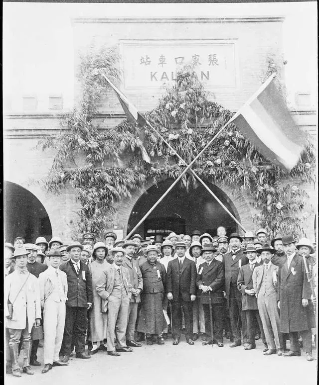 这个红砖成排的地方是张家口车站大门楼,门楣上中文英文都挂着,植物绕着门楣爬了一圈角,正中间一位手扶黑色礼帽的,就是孙中山先生本人,四周围着身穿西装、长衫还有军装的各色人,谁家小孩偷偷抬头看过都记得,这阵仗不简单,感觉空气都被绷起来,孙先生那几年一手拉着实业大旗,喊出了“铁路是实业之母”,自己真跑来看路线、查设备,老人提起来还说,“那年月国家才有点骨气,自己人干的事儿自己做主”,照片上一眼能看到热火朝天的劲头,现在高铁一趟趟飞一样地过,谁还会想到百年前是这样挤着人留纪念。