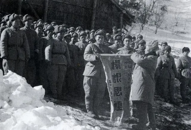 满地皑皑白雪,寒风吹都挡不住队伍列成的方阵,前面两人举着红色大旗,上边大字写着“杨根思连”,这面旗是抗美援朝之后才有的,授予给连队就是特殊荣誉,整队的士兵身穿厚棉军装,帽子压得低低的,雪踩出一串脚印,不用多说什么,这一面旗上的字,每次想起都是千斤重,家里老兵讲,那个年代靠的是“死都不怕的苦胆和信念”,现在想想,他们顶着漫天风雪站在那里,背后就是新中国的骨头和魂气。