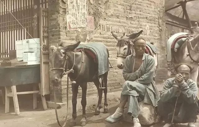图里头衣衫单薄的两位苦力,一个坐在石头上,一个蹲着,身边两头灰驴,拴在院墙边,天还没亮就开始张罗,哪有现在什么轻松活计,冬天风劲一刮,衣襟都被吹得贴着腿,两个人眉头皱着,估计早饭还没落肚,驴背上搭的旧毡褥子跟着年头都打了结,这场面搁今天年轻人跟本想象不到,爷爷说那年月咬牙才能熬过一日三餐。