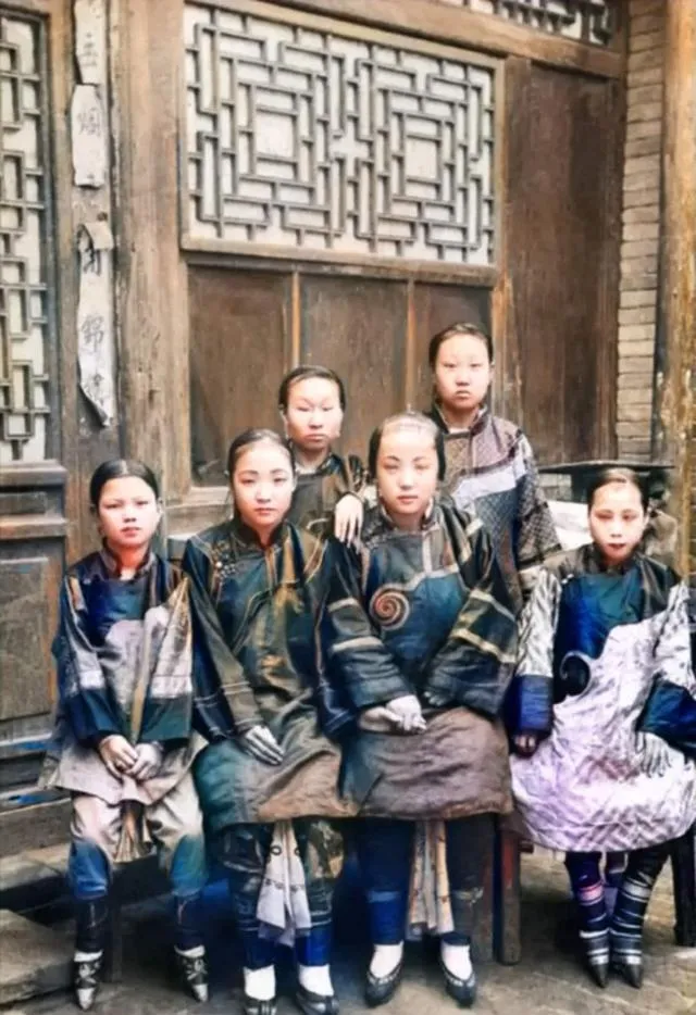 这一排坐着的,是清朝末年大户人家的小姐妹,一个个梳得光溜溜,衣服倒是有点紧巴,腿上缠着厚厚裹脚布,步子迈不开也要假正经,小时候姥姥说,谁家女娃裹脚裹得好,媒人都争着抢,如今一听全当个笑话,过去的美可真苦。