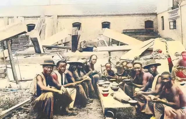 真实老照片:苦力吃饭香,壮勇瘦如麻,地主婆娘一脸油腻