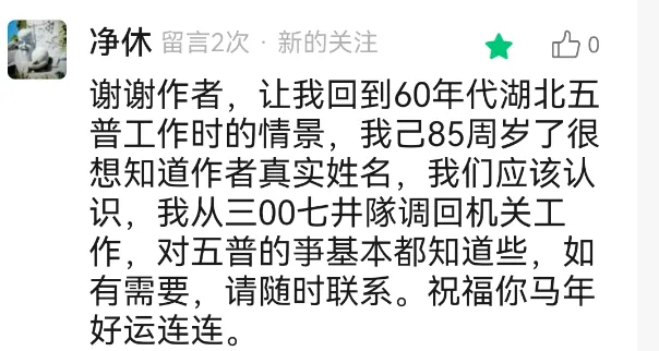大概是老了吧,爱怀旧,最近总沉浸在回忆中。我是从五普出来的人,前段时间写了一系列关于五普的怀旧文,收到了不少粉丝留言,其中有位叫“净休”的读者,说自己已经85岁了,60年代就在湖北五普工作,对五普的事都知道些。