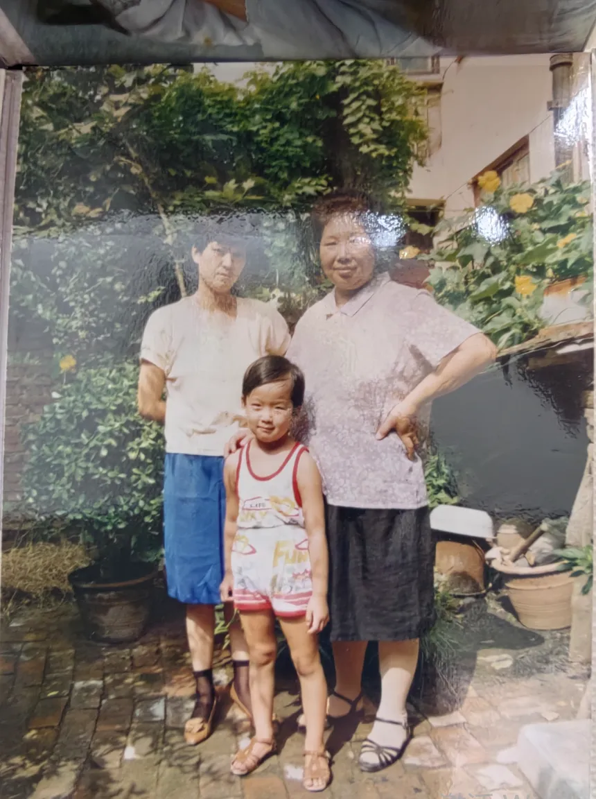婆家在五普修配厂,住一楼,前面有个小院,院里种着一棵石榴树,窗下栽着几棵丝瓜,种着几盆花。院里还有一个抽拉水井,可用来洗衣、擦地、浇花。这张照片大概是94年拍的,女儿的头梳得光光的,可爱的像个“小坏蛋”。婆婆那时五十多岁,还在居委会当主任,如今一晃,我也到了她这样的年纪。