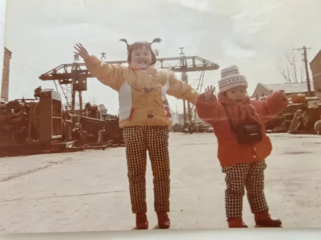 这是女儿和表姐,两个孩子背后是修配厂的龙门吊,上写着“工业学大庆”。龙门吊是专门用来起吊各种钻机部件的。解释一下:修配厂就是维修钻机的单位,井队的钻井设备比如柴油机、发电机、钻具等都可以拉到修配厂来修。厂里后来搞三产业,自己组装柴油机,还把市场推到了石油行业以外,很是红火了几年呢。