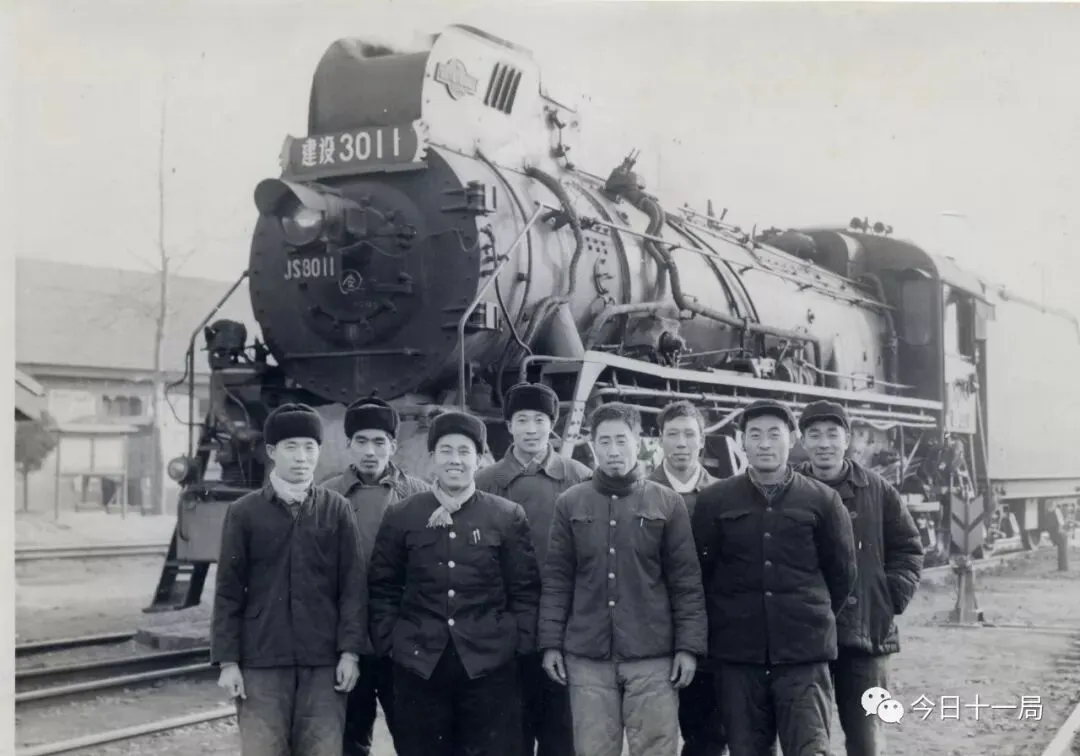 火车头前的合影,酷