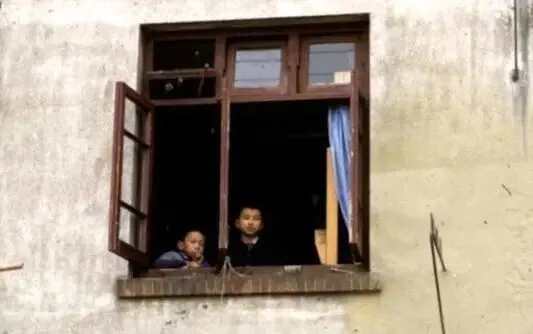 1972年,上海工人新村里的一户人家,两个孩子从窗子里向外远眺。