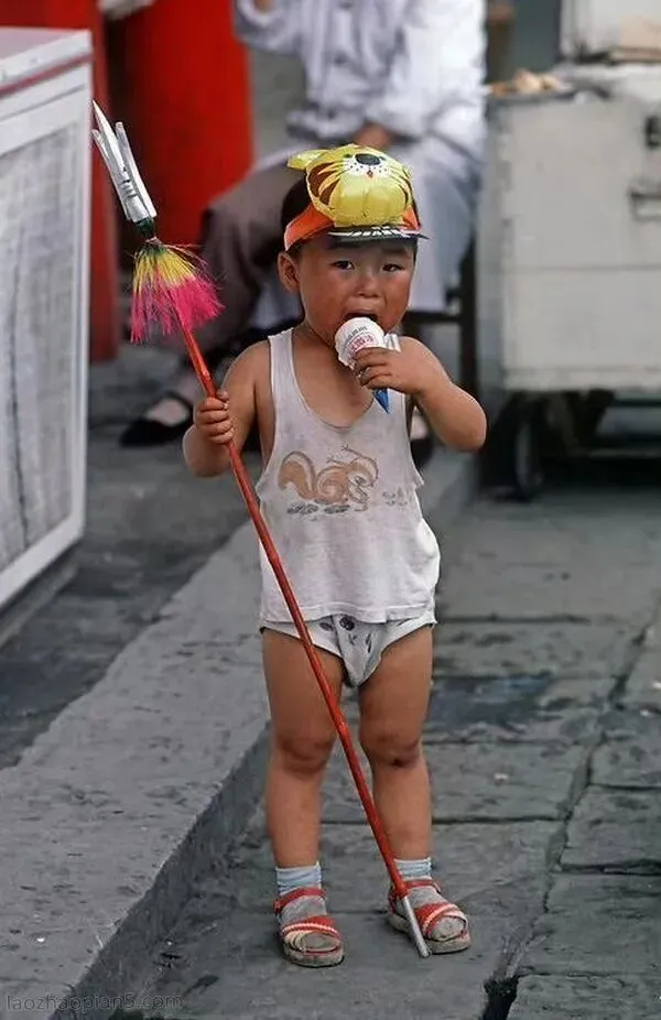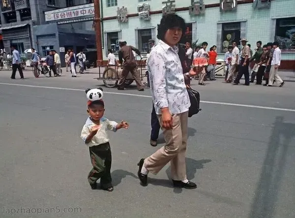 1985年的沈阳街头,马路中间,一对母子盯着拍摄的相机看,孩子手里拿着西瓜边走边吃。不知道,这对母子,要是看到这张照片有何感想?