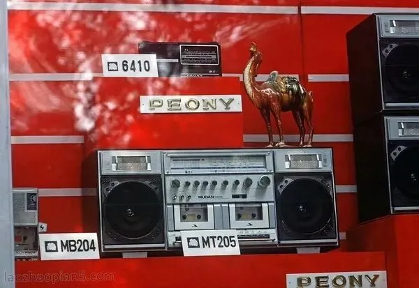 商店里陈列着的录音机。录音机起了个洋名“Peony”,其实就是牡丹牌,北京产的。