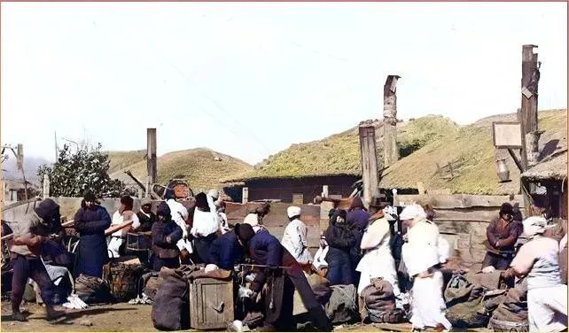 这张图.片让我想起了爷.爷说过的话.,那时候赶集可.比.过年还热.闹。你看这些穿着传统服饰的人们,有的蹲着,有.的坐着,身.边堆着.行李包裹,应该是在等车或者做买卖。这种人挨人,.肩并肩的市井气息,是现在.再也找不回来.的烟火味道。