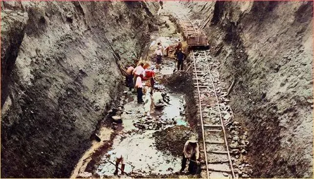 看这.挖沟修.渠的场面.,全.是人力劳动,没有机械.设.备,大家就这么一锹一锹地干着。那个年代的建设.全靠人海战术,艰苦是真艰苦.,但那股子.干劲儿也是真让人敬佩。