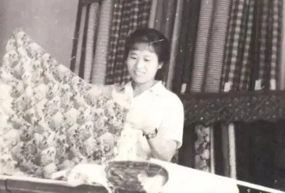 上世纪70时代,卖服装的还非常少,普通百姓全是到供销社里购买布料,随后找裁缝师手工制作自裁。图为上世纪70时代供销社里一个卖布料的好看女售货员。