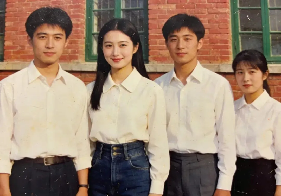 翻出这张毕业照,白衬衫、红砖楼、胶卷的划痕,全是我们这代人的青春印记。