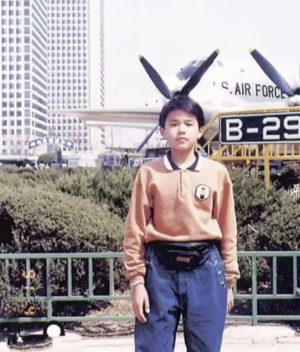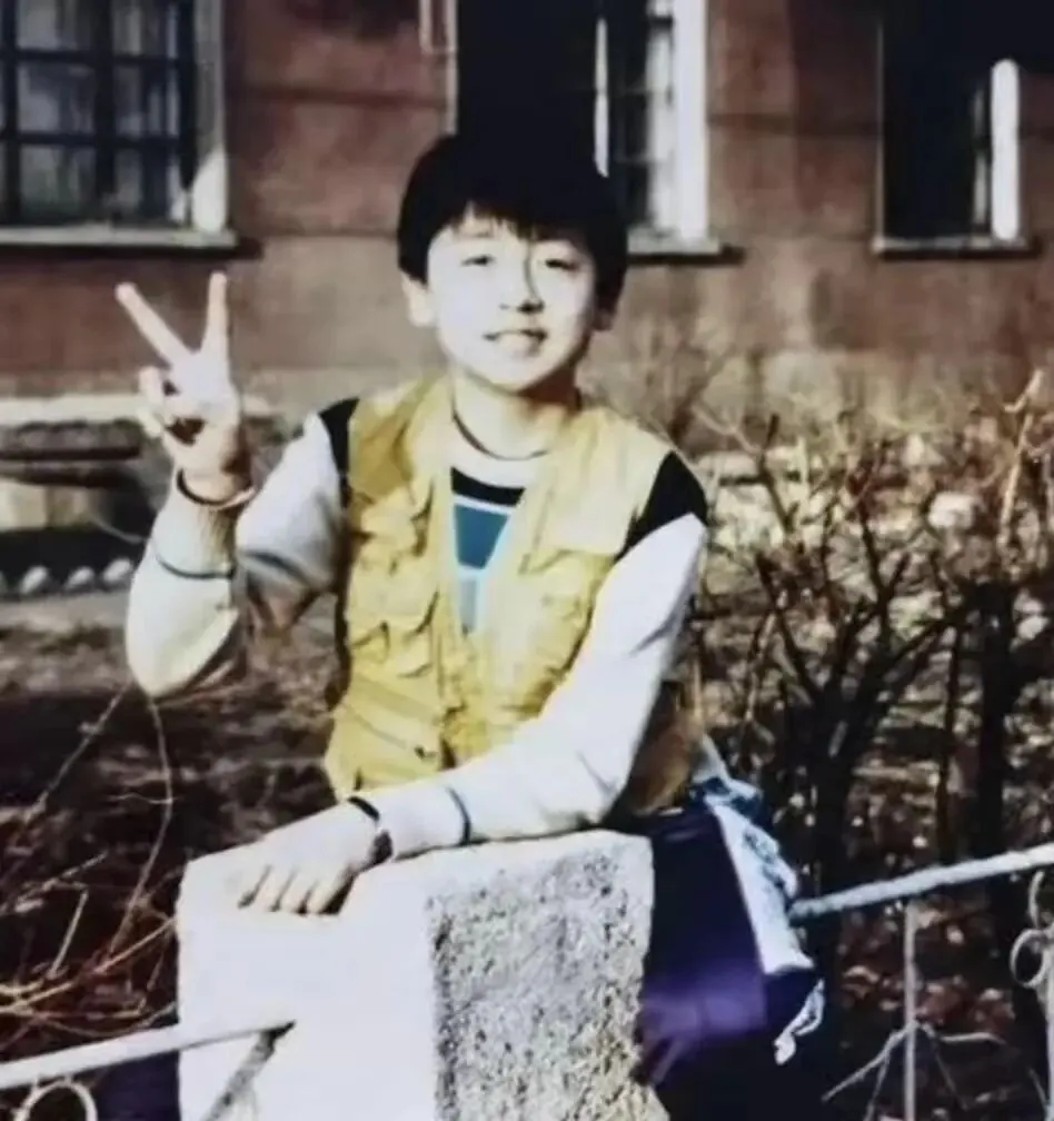 5、小时候的张译,红花中的一点绿。